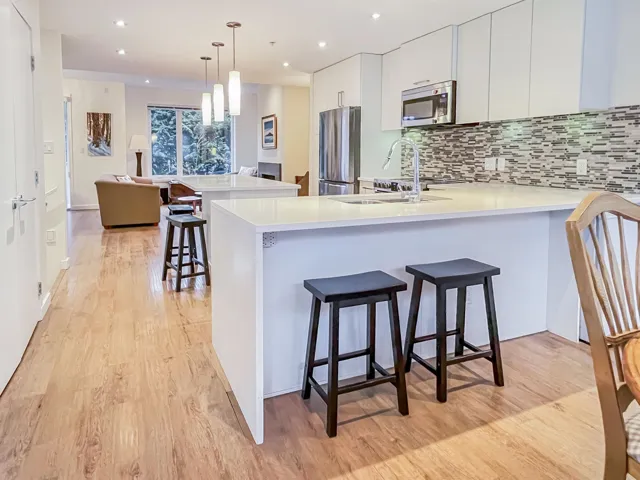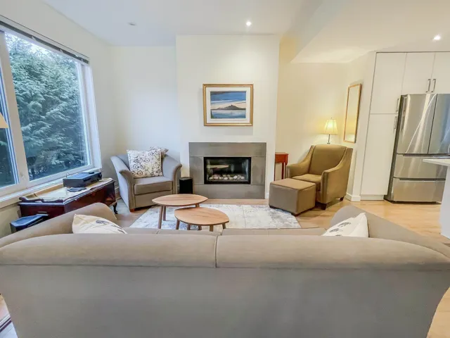 This exceptional Rivendale property, unit #21, is a rare gem that will not remain available for long. Situated in a secluded, private enclave just steps from beautiful Fisherman’s Park, this home provides unparalleled serenity and complete exclusivity. A spacious yard, accessible directly from the garage, guarantees security and convenience. Inside, the open-concept layout highlights a gourmet kitchen outfitted with some new stainless steel appliances. The living area boasts a modern, cement-accented natural gas fireplace, radiating both style and warmth. Technology abounds here, featuring an EV Charger, a Nest thermostat, and highly energy-efficient systems including a heat pump. A standout is the vaulted master bedroom with an ensuite, a truly coveted amenity setting this duplex apart.