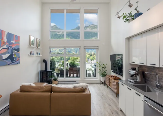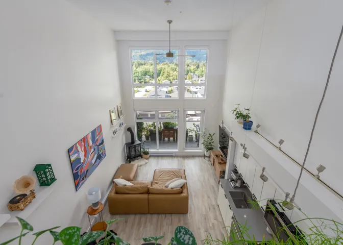 Spectacular 2 storey Penthouse in downtown Squamish! This property has 17ft ceilings, westerly views of the Pacific Ranges of the Coast Mountains and Howe Sound. With over 1000sqft, this property features 2 bedrooms plus a den/office area, storage for your gear, and premium appliances. A large shared rooftop patio with views of the Chief and Shannon Falls is a great place to entertain. Close to recreation, restaurants, grocery stores, the Estuary and more