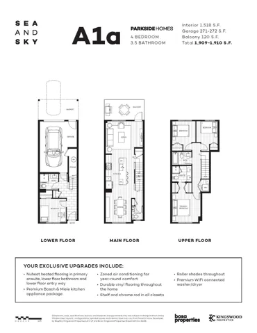 Presenting the final collection of Parkside Homes – the most sought-after location in the desirable SEAandSKY community by Bosa Properties & Kingswood Properties. Located along the shoreline community park, this 4 bedroom home has incredible views of the blind channel on one side and the Chief on the other. Premium upgrades include – air conditioning, Bosch & Miele appliances, heated entryways and ensuite washrooms, premium washer/dryer, vinyl flooring throughout and more. Steps away from the future 17,000 sq ft Activity Centre and pedestrian bridge to downtown. The bridge is under construction and completing this summer. Don’t miss your final opportunity to own a Parkside home at SEAandSKY!