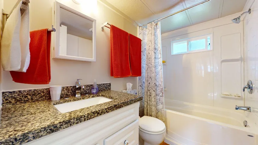 Welcome to 34 Angelo’s! This adorable 2 bedroom plus den home is the perfect place to call home. Significantly renovated over the years including roof, windows, gas furnace, kitchen, bathroom, plumbing, electrical, flooring, and detached studio. Stepping into the home you have a large foyer/den which is perfect for storing gear to use as an office. Open living and dining area flows into the galley kitchen. Primary bedroom with built in closet and dresser. Step back outside to your tiered and covered deck that leads to the fully finished studio. The Studio space has power and could be used for a workout room, an excellent separate office, or entertainment area. Fully fenced yard off the deck gives you a lovely private space just for you or to share with pets.