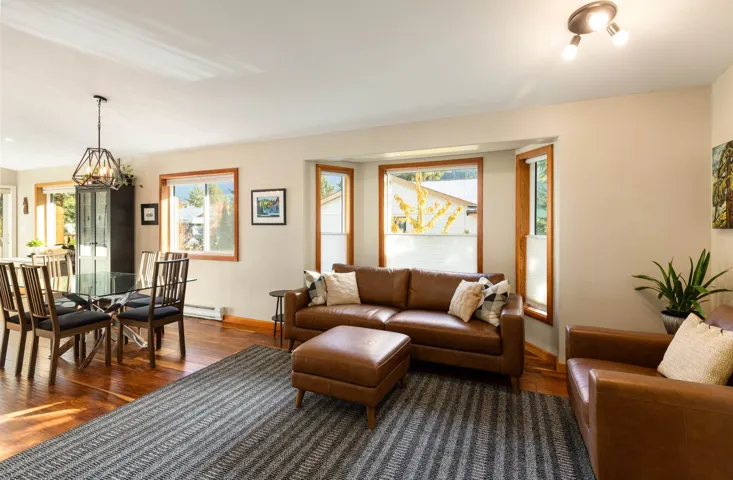 This charming home offers everything you need for relaxed family living. The kitchen and living area feature high ceilings, abundant natural light, and a seamless flow to the deck, perfect for outdoor dining or keeping an eye on the kids while they play in the expansive yard, which is beautifully landscaped with a garden, berry patch and fruit trees. Unwind in the hot tub with stunning views of Mt. Currie, or enjoy the cool shade on the lower patio. Inside, all bedrooms are easily accessible on one level, making it ideal for families with young children. The suite offers revenue potential or additional versatile space. Plenty of storage including a garage, shed, ample closets, and space under the stairs. This is a lovely area with lots of families nearby to grow up alongside.