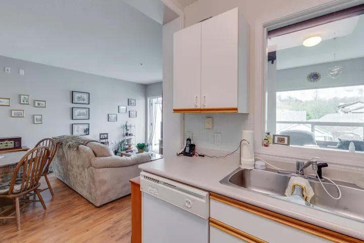 Bright 1 bed+ den, 1 bath condo in Eagle Grove, 800+ sq. ft, perfect for active adults aged 55+. The extra den space is ideal for an office, hobby room, or guest room. Enjoy stunning views of the mountain range & a waterfall view from every window! Located on the quiet west side, within walking distance to shops and amenities. The large covered balcony is perfect for taking in the gorgeous scenery & having a few garden boxes. Warm and cozy with a gas fireplace. Gas and hot water included in monthly condo fees. More great features include in-suite laundry, storage/pantry, and wheelchair accessibility. Enjoy the facility with top-floor amenities sunroom, sundeck, meeting room with kitchen, and outdoor garden plots.
