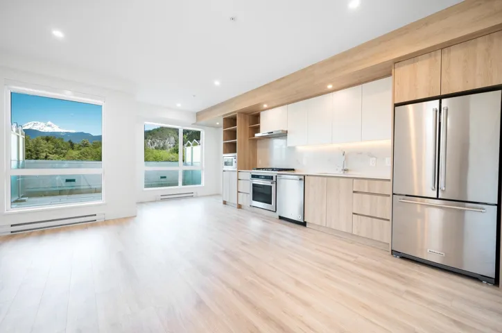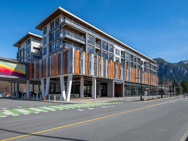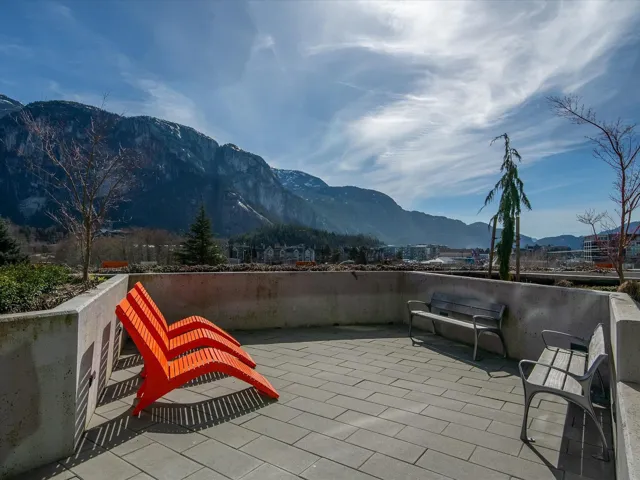 Welcome to this stylish one bedroom & flex home with large terrace that offers an open-living floor plan and peaceful outlook with mountain views, in a location that is hard to beat. Features include modern-designed kitchen with quartz countertops, plenty of storage & stainless-steel KitchenAid® appliances; spacious living room and dining area that opens onto a large terrace with space to entertain; airy bedroom and well-appointed full bathroom; and large flex room with peg wall for storage for outdoor recreation gear. Benefits incl. in suite washer/dryer, parking & storage locker. You’ll be steps to shops, restaurants & downtown Squamish. Pet friendly too! Move in today!