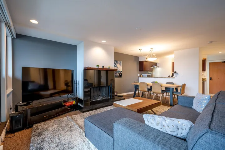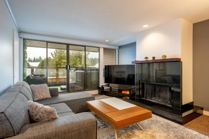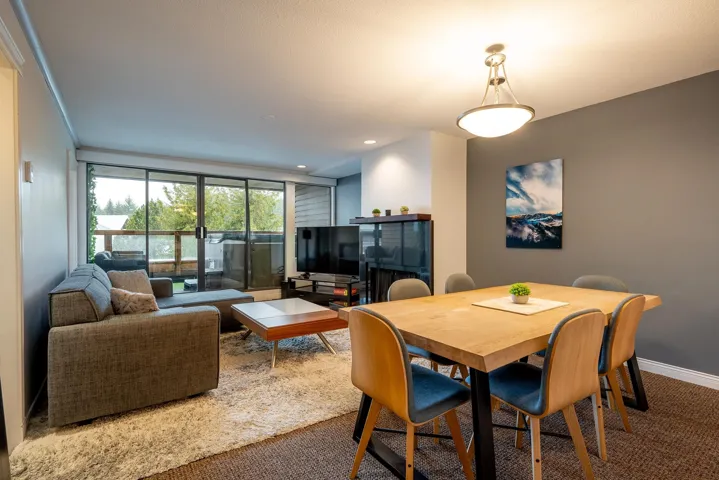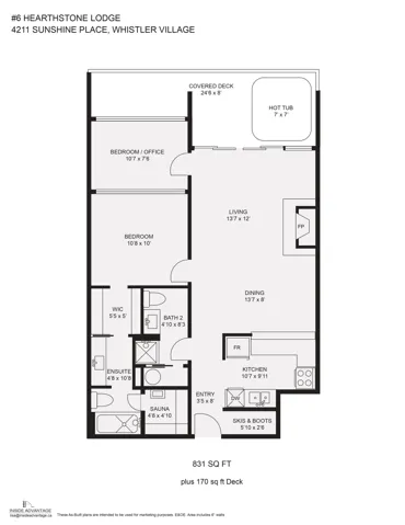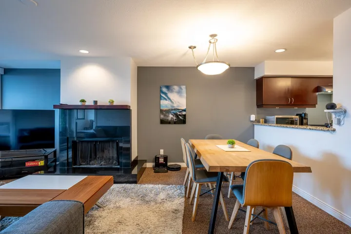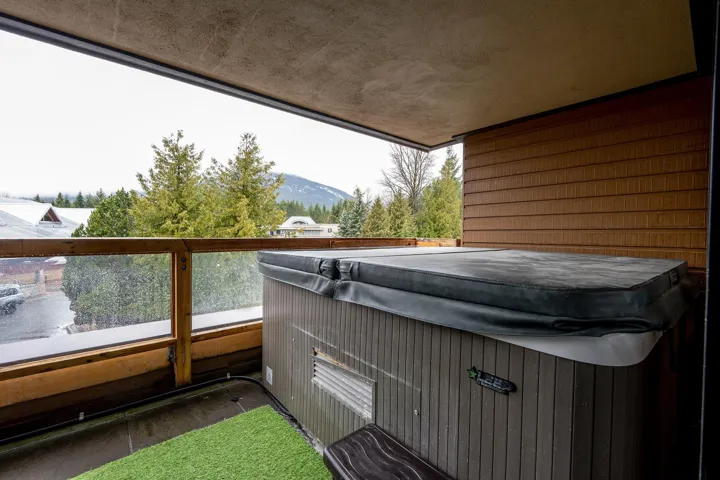 Hearthstone Lodge; an incredible, centrally located building, designed by renowned architect; Arthur Erikson, is absolutely the perfect spot for your Whistler getaway! #6 Hearthstone Lodge is a tasteful, 831 sq/ft unit that would be an excellent weekend retreat, full time rental property or courtesy of flexible zoning – you could use the unit personally while reaping the benefits of renting the unit out when you are not using it! With sleeping room for 6 throughout the interior living space, there are 2 bedrooms, 2 bathrooms, boot drying area in the entry and a wonderful open concept main living space. 170 sq/ft of covered outdoor deck space is the perfect spot for year round enjoyment; relaxing in the hot tub or sitting back and enjoying the mountain air in the cozy seating area.