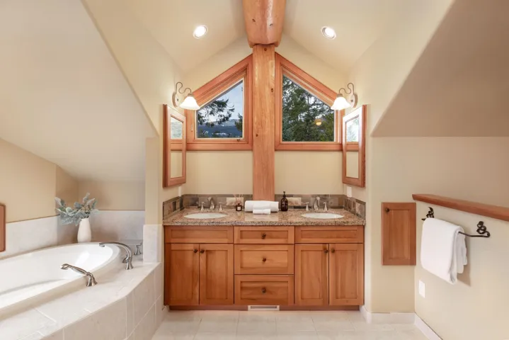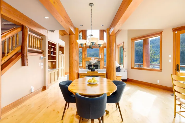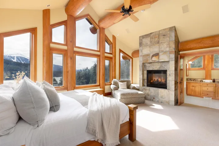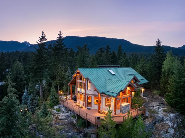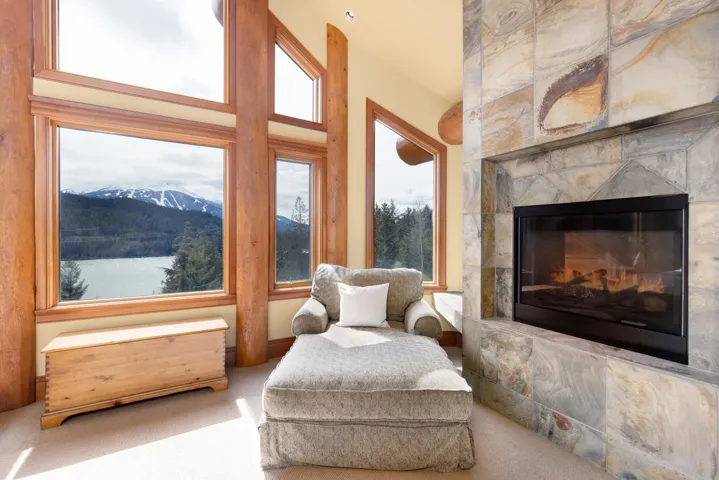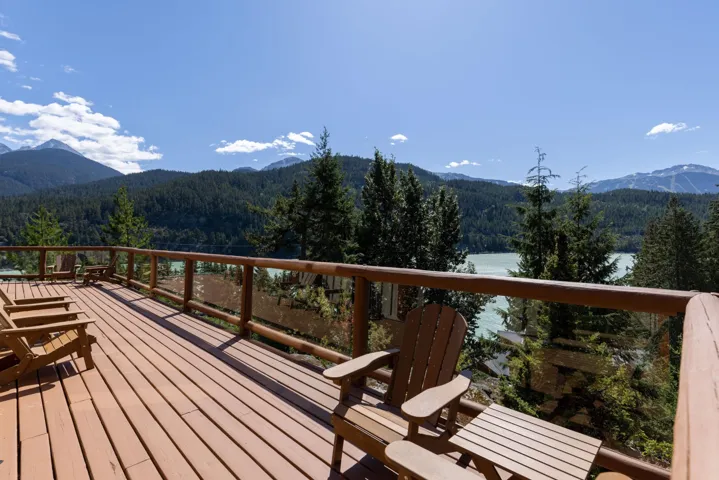 Discover unparalleled luxury in this 6 bedroom mountain sanctuary, with unmatched views of Whistler’s majestic peaks and Green Lake’s glacial hues. Spanning 3,765 sq ft, this quality custom-built post-and-beam style home marries privacy with awe-inspiring vistas. Its open-plan living area, adorned with floor-to-ceiling windows, showcases Whistler & Blackcomb’s dynamic beauty, creating an inviting atmosphere for both relaxation and entertainment. The residence features year-round comfort with a sun-drenched wrap-around deck and a cozy gas fireplace. Luxury touches include heated tile floors in the kitchen and bathrooms. The primary bedroom suite offers stunning views, a vaulted ceiling, two-way gas fireplace, jetted tub, and separate shower, promising serene retreats. 1 bdrm revenue suite.