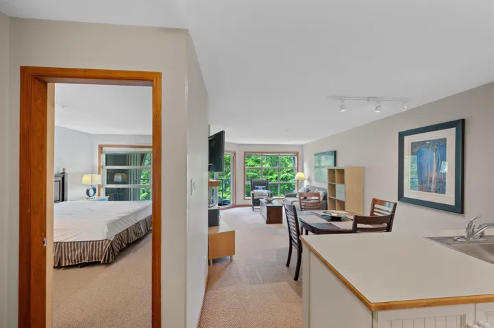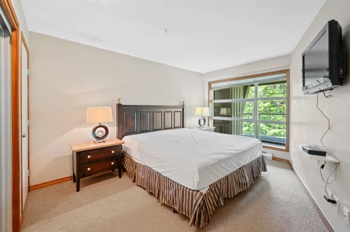 Enjoy peaceful days and evenings on your private balcony from this top floor ski-in/ski-out 1 bedroom suite. This suite offers peaceful views of the forest with peek a boo views of Blackcomb Mountain and all day sun. Enjoy full time personal use of your suite and the availability to rent it out when you are not using it, for investments revenues. The complex offers outdoor hot tubs, an outdoor pool, work our facility, front desk, and a lounge. Strata fees include hydro, gas, phone, internet, making your expenses low. This property is fully equipped and ready to enjoy for our Whistler sanctuary.
