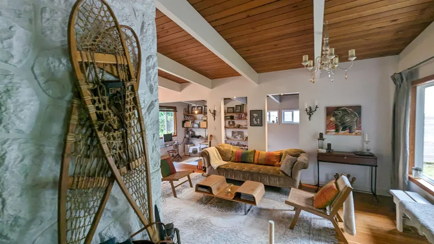 Exquisite Mid Century Rancher w’ Vaulted Cedar Ceilings in Garibaldi Estates! Welcome to 40349 Park Cres, a stunning oasis nestled in the heart of the sought-after Estates. Situated on a serene cul-de-sac, this meticulously maintained Mid Century rancher offers a perfect blend of timeless charm and modern upgrades. Immerse yourself in the tranquility of this wonderful neighbourhood while enjoying the expansive, private backyard. Lush garden and natural grape producing vines on partial covered deck. Heated storage and enclosed workshop cater to your every storage need. Step inside and be greeted by the grandeur of vaulted post and beam cedar ceilings, elevating the airy and open living space. Every corner exudes elegance, with fir hardwood floors adding warmth and harmony.