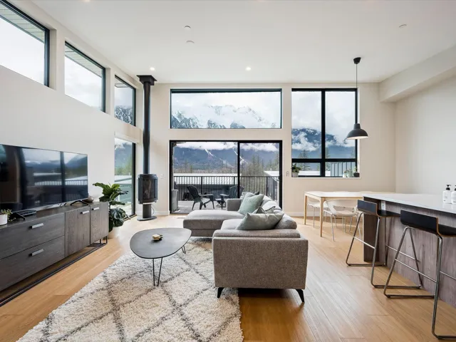 This spacious duplex is located in Elevate complex in Pemberton’s new Sunstone neighbourhoood. Newly built in 2021 with designer finishes including gourmet kitchen Blomberg & Panasonic stainless appliances, custom cabinetry & stone countertops. Bathrooms feature heated floors, custom tile, stone countertops and Riobel fixtures. Open living plan is perfect for entertaining, with expansive windows & large south facing deck with stunning mountain views. A double garage provides ample parking and is fully outfitted to organize all your tools and toys. Designed to meet BC Energy Code Step 4 standards, with forced air/heat pump providing air conditioning & heating. Upgrades include hot tub rough-in, patio fence & induction range. Covered under new home warranty.