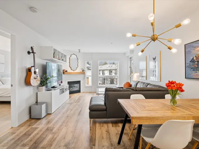 This contemporary 2 bedroom condo in the Aqua offers a quiet and bright west-facing space with 2 bedrooms, 2 full baths and a den/flex room perfect for storing outdoor gear. The unit boasts shaker style cabinets, granite counters, stainless steel appliances, a gas range, tile entry, laminate floors, and a cozy gas fireplace. Enjoy the beautiful views of the west coast mountains from your private patio. The secure underground parking with elevator access adds convenience. Located backing onto estuary trails with views of the Howe Sound, this condo is a quick walk to amenities such as restaurants, shopping, farmers market, coffee shops, transit, library, marina, and more. Don’t miss out on this fantastic opportunity!