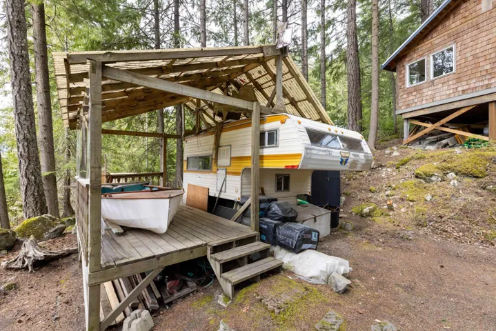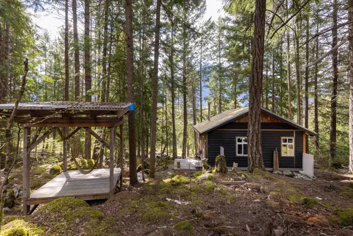 Escape to a rustic yet modern haven in Lillooett Lake Estates. Experience off-grid living with water, an outhouse, and a guest camper. Relax on the yoga deck with stunning views and community security. Just minutes from two boat launches, enjoy serene moments on Lillooet Lake. Purchase through a sharehold certificate among 150 lots. Surrounded by enchanting forests, it’s a magical retreat steps from the shimmering waters.