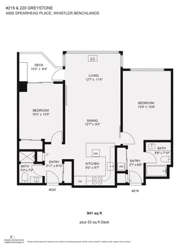 Located within a quiet cul-de-sac on the Benchlands; a fantastic ski-in/ski-out location you will find the lovely Greystone Lodge. #219/220 Greystone is a gorgeous renovated unit that is a perfect option for year round enjoyment. Offering 2 spacious bedrooms and 2 full bathrooms throughout the 941 sq/ft of interior living space with perks including; air conditioning, in suite laundry, warming gas burning fireplace and a charming covered deck. Being sold turnkey this Phase 1 property would make a great home for a Whistler local, weekend retreat for families from Vancouver or a revenue generating property for those savvy investors looking for a new addition to their property portfolio.