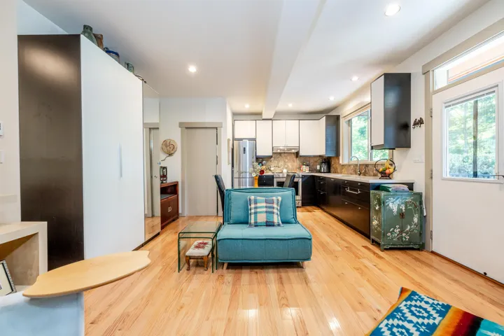A RARE GEM. Nestled against Smoke Bluff Park with Mt. View. Compact 2BR easily made into 3 bedrm. and still have mortgage helper studio suit for big rent. Quality built. Home features large front & rear decks, high vaulted ceilings, gas fireplace and open floor plan designed. Large windows and skylights. Ample natural light. Kit. size inclds. small fam. rm. Master bedrm.: walk through closet, full en-suite & private deck. Very marketable studio ste. finished with oak floors, stone & ceramic tiles & granite countertops. Patio and garden space. 700+ sf garage & enclosed workshop with 10-foot ceilings plus storage. Endless hiking, cycling, and world class rock climbing are literally at your doorstep, with bus, schools, kids park and hospital all nearby. Open Sat.Dec.7 1-4 pm.