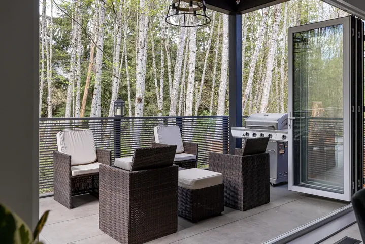 HOT BUY MOTIVATED SELLER Superb European design, distinctly unique custom home delivers style & quality throughout. Impressive main floor boasts 24′ ceilings & sleek concrete floors, steel & concrete entry stairs(built-in LED lights), 10’ entrance & interior doors, exposed engineered wood beams, glass railing & modern live edge open stairs, stone slab energy efficient natural gas fireplace, NanaWall folding & sliding glass door system gives access to large outdoor covered patio you can enjoy year-round. Kitchen is the heart of the home with stunning floor to ceiling cabinets & full-size pantry, gleaming stainless appliances,8′ waterfall edge island with seating for 4, 4 large bedrooms/3.5 bathrooms(heated floors), engineered heating&cooling systems, on demand gas hot water, 377sf garage