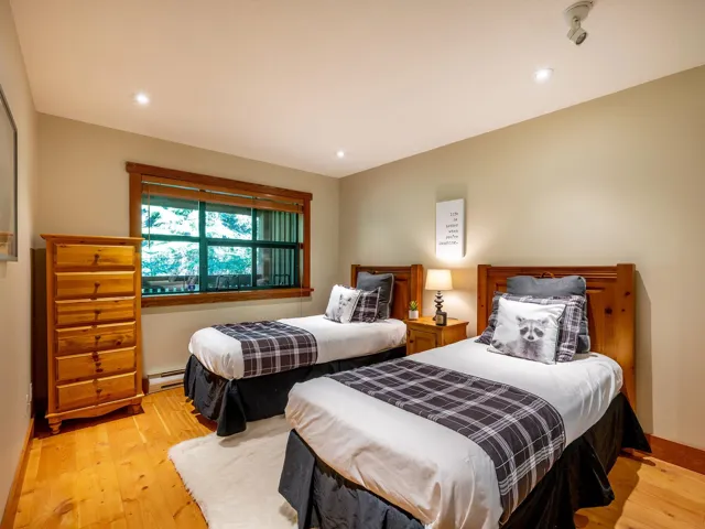 Rarely available Benchlands townhome with a garage and ample space for bike and gear storage! This 1635 sq/ft unit features 3 bedrooms & 2.5 bathrooms, updated flooring, kitchen, and bathrooms and wood burning fireplace. The lower deck is designed for a PRIVATE HOT TUB. The Woods complex is nestled along the Valley Trail next to the Fairmont Chateau Whistler Golf Course, with Lost Lake trails and beaches just a short walk away. Enjoy the convenience of the SKI HOME trail across the street and the free village shuttle. Tourist accommodation zoning allows for rental income when not in use. Whistler is exempt from BC short-term rental legislation, speculation/vacancy tax, and foreign buyer ban. GST not applicable. Well-managed strata with low maintenance fees.