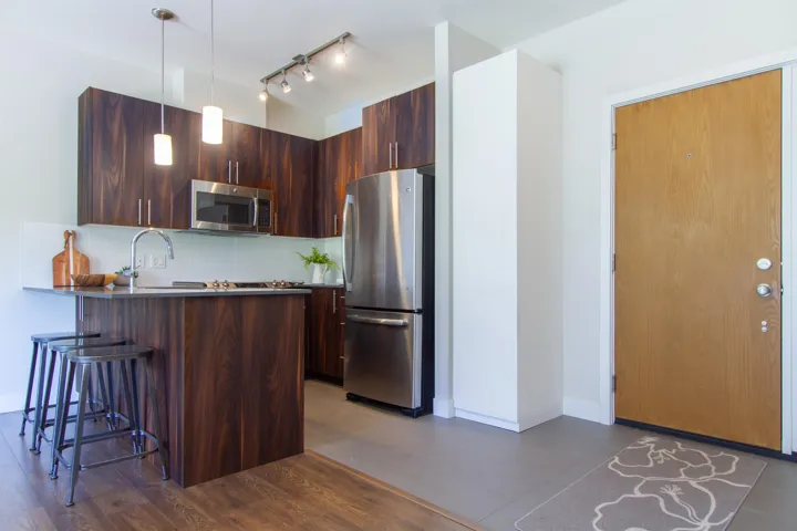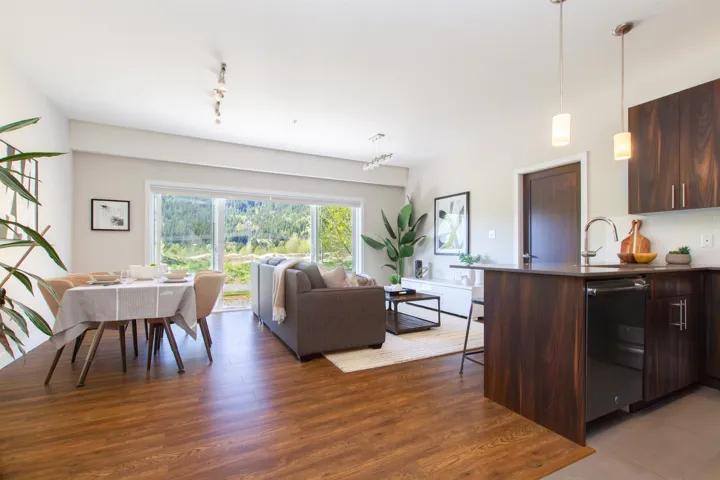 This home in vibrant Cheakamus Crossing epitomizes the essence of mountain living and is just steps away from hiking and biking trails along the Cheakamus River. #104 is the only 1-bedroom suite in the complex and you will love the townhouse feel of being on the ground floor with walkout access directly from the double sliders. The generous lounge and kitchen area offer plenty of space to relax, entertain, or work from home. The unique live-work zoning allows for flexible use of the space. In-floor heating is both comfortable and keeps costs low. Underground parking & storage are ideal for all your toys and gear. Embrace the strong sense of community at Bayly Park with kid’s play structure, dog park, community garden, sports courts and trails connecting everywhere.