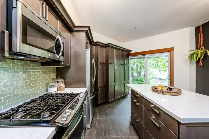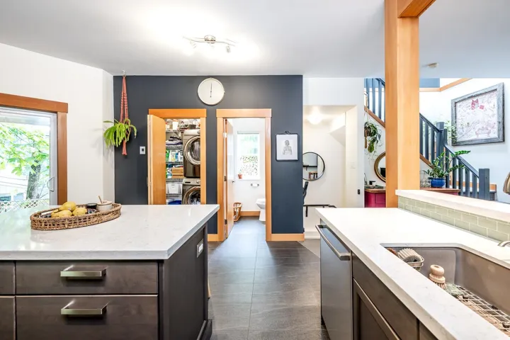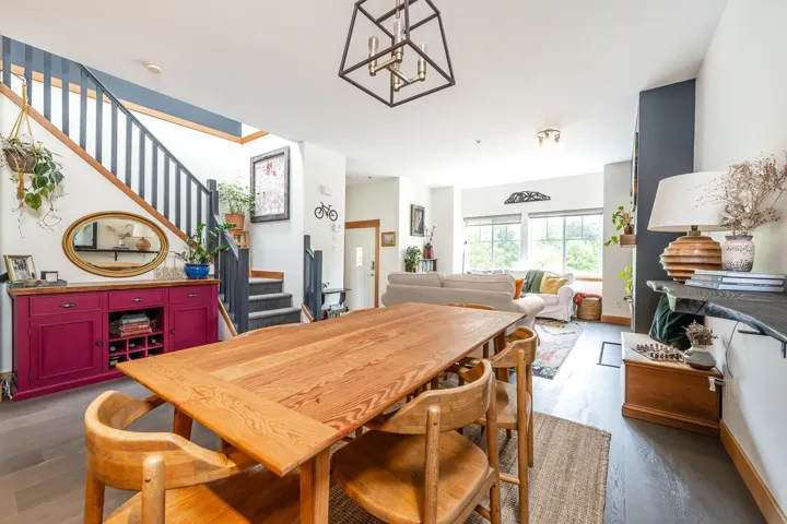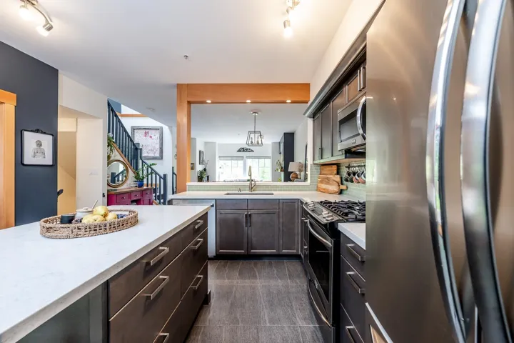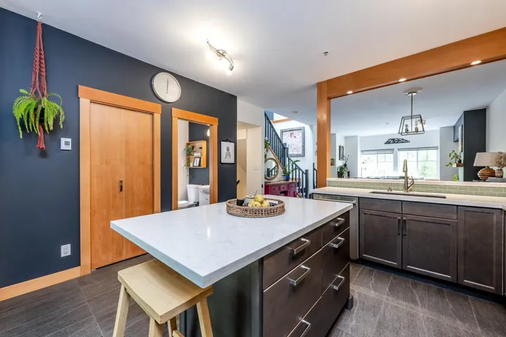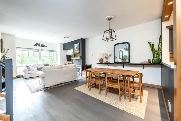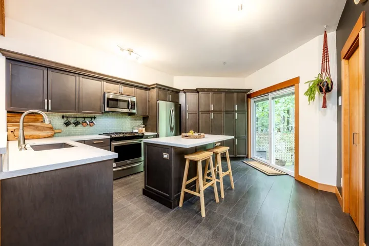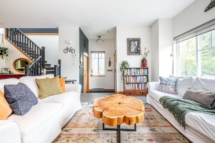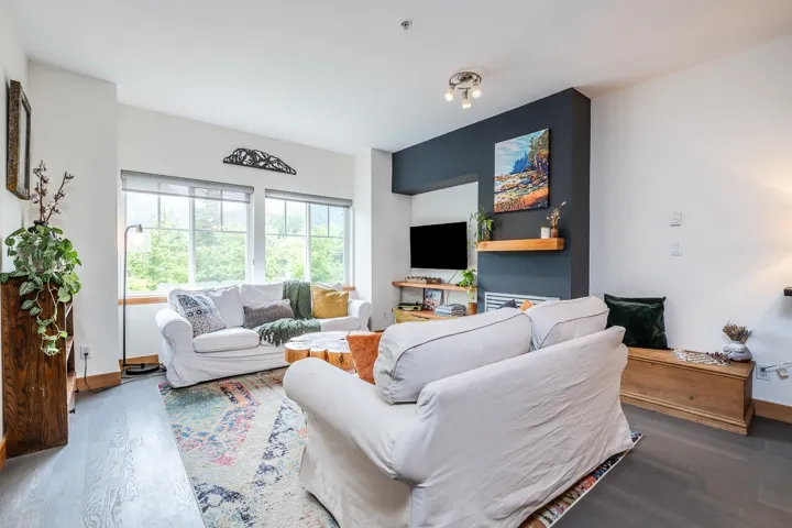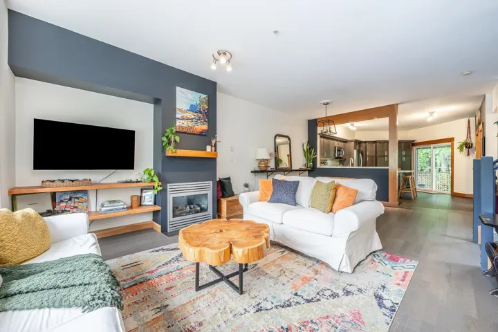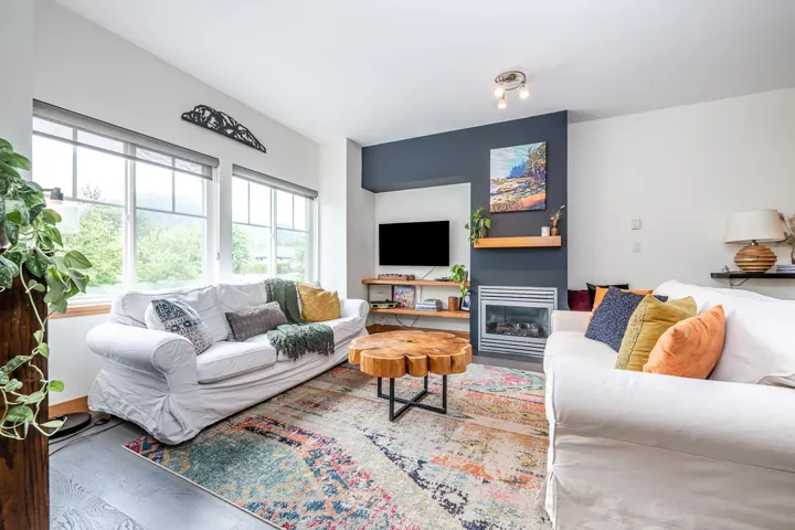 Beautifully updated end unit in popular Virescence w 3 bdrms/2.5 bthrms & gym/media space. Features skylights, downstairs mudroom, storage room, main floor laundry room & custom ski, bike & gear racks. Home has been updated inc kitchen w s/s appliances inc N/G stove, stone island & breakfast bar, flooring, wood accents & some of ensuite. Bright living w N/G fireplace. Access to backyard from kitchen – easy BBQing & gardening. Versatile spare room w murphy bed & fold down wooden desk. Unlike other complexes in Squamish parking is not an issue here! This unit features a driveway, single garage and tons of visitor parking. RV/Boat parking available for monthly rental. Garage has been converted from a double tandem to a single with separate gym/media room (easy conversion back if wanted).
