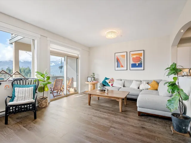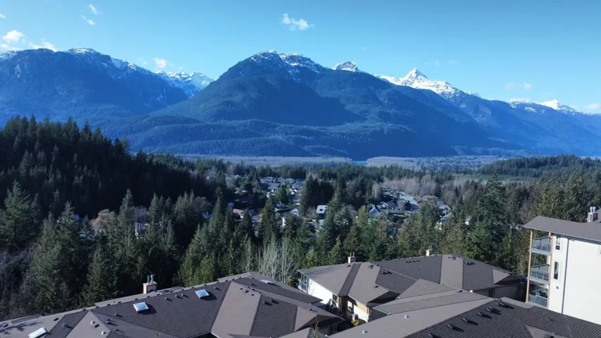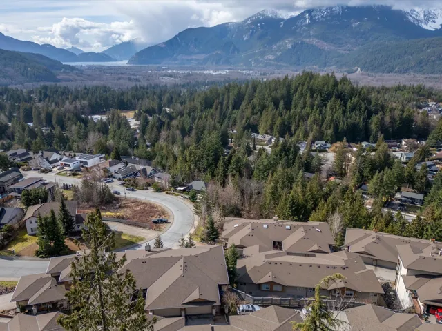 Panoramic mountain view 3 bedroom + flex townhome in Garibaldi Highlands. Renovated property w/ modern kitchen with stainless steel appliances, new corian counters, hardwood floors, spacious living/dining areas, gas fireplace, and new HWT. The large flex space can easily be a 4th bedroom, media room or office. The main level deck provides a perfect tranquil spot to soak in mountain views and creates low-maintenance outdoor living. The primary bedroom features ensuite with a soaker tub and walk-in shower and an additional deck with mountain & Howe Sound views to wake up to. Complex updates include new roof and gutters. Backing onto a trail, this home offers incredible access to premier biking and hiking trails in Squamish. Double garage for all your toys and ample in-home storage.