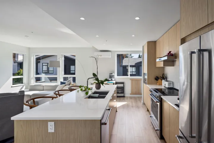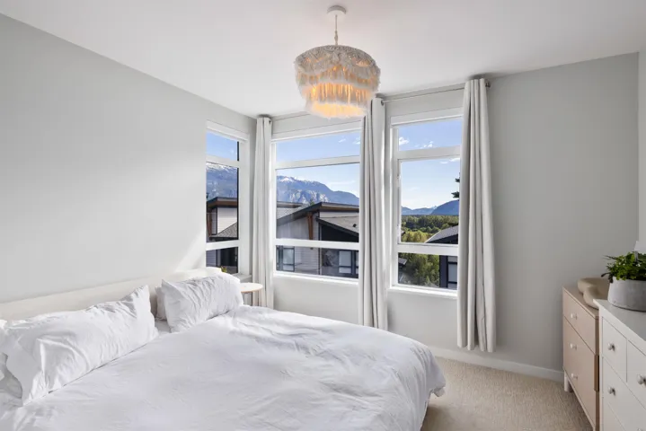 Welcome to Highline at Garibaldi Springs by Polygon! This bright & beautiful 1532 sq ft 3 Bed | 2.5 Bath end unit townhome offers stunning mountain inspired architecture, impressive finishings throughout & mountain views! Enjoy rich laminate flooring & 9 ft ceilings on the main level along with powder room and a spacious gourmet kitchen featuring contemporary flat paneled cabinetry, stone countertops and a S/S appliance package. Three spacious bedrooms on the top level along with 2 full spa inspired bathrooms. The home has been upgraded with a heat pump for A/C and the over height double garage has a beautiful polyurea coating added for durability! Surrounded by nature and in close proximity to trails, parks, recreation and all that Squamish has to offer. Available for Private Showings.