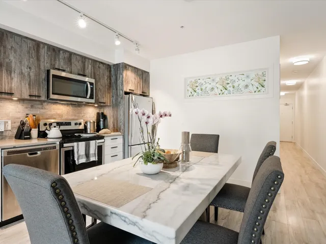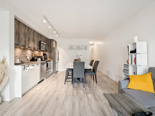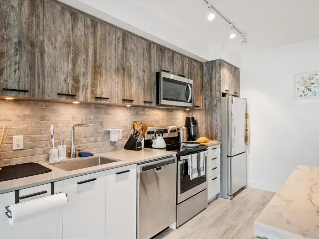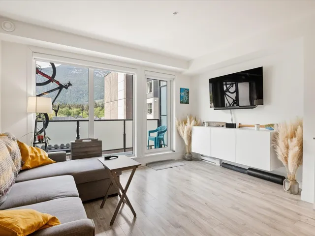 Spacious 1 bedroom+ den unit with modern finishes throughout in The Lauren. 715 sq ft of living space+ 100 sq ft of west facing outdoor patio with mountain views! The den is large enough to be used for an office, additional storage, or even a 2nd bedroom. The Lauren is situated conveniently and strategically downtown, close to everything you need but slightly removed from the hustle of Cleveland Ave. There is bike storage, an additional storage locker, a bike wash room, and 1 underground secure parking spot. The Lauren has one of the best communal rooftop patios in Squamish with unparalleled views!