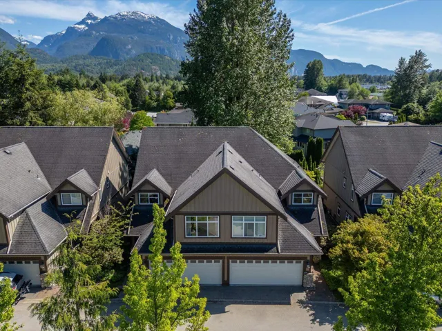 IDYLLIC OASIS: Bright & private SOUTH facing ½ duplex in coveted Meighan Creek! With only 2 units past this one & no one opposite front or back this location is amazing. Expansive 1786 SF on 2 levels featuring 18ft vaulted ceilings, open layout on the main level w/ abundant light from over height windows, flex space/office. Inviting gas f/p, generous rooms, kitchen w/island.Private brick patio & fenced yard w/ room for entertaining & gardening, facing trees & mountain top views. Curved staircase w/ metal railing to upper floor featuring 3 bedrooms & a lofted landing office space. Primary bedroom: 5 pce ensuite, walkin closet, gas f/p & balcony w/ beautiful views out to Haybrich, Chief & Tantalus!Double garage w/ storage space. Easy access:hwy, trails, school, amenities!