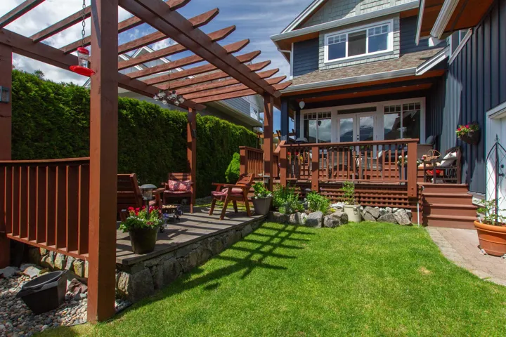 This beautifully maintained University Highlands home ticks all the Squamish boxes! 3 large bedrooms, 2.5 baths, home office plus huge seperate rec room! Bright open concept main floor with hardwood flooring, quarts countertops in the kitchen, gas range, stainless steel appliances, updated backsplash & hood fan. Geothermal heating & cooling plus cozy gas fireplace. Walk out sunny S/E facing tiered patios and serene pergola surrounded by tall cedars for privacy in the fenced backyard. Landscaping with irrigation system. Tons of storage in the walk in crawl space for all of your biking/climbing/adventure gear – there’s even room for your kayaks! Situated steps from Capilano University, GHE, kids playground, pumptrack, & world class mountain biking. Move into this dream home this summer!