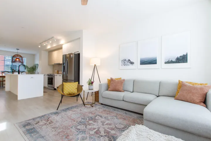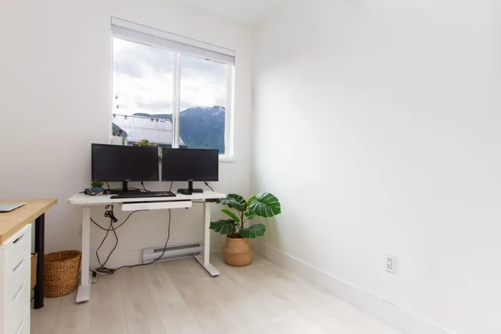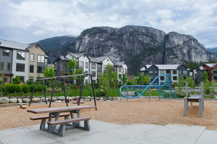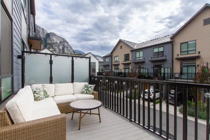 Welcome to this stunning 1513 sq ft, 4-bedroom, 3-bathroom townhouse, a blend of luxury and convenience. Boasting high-end finishes which include a designer kitchen and multiple developer upgrades including laminate flooring throughout, an epoxy garage floor, heated primary bathroom floors and window/door screens. The home offers a single-car garage with additional covered parking and EV charging. Enjoy the outdoors with 2 patios and views of the Chief and Howe Sound. Backing onto a lush green belt and a kids’ playground, it offers recreational space for the whole family with upcoming amenity building. Conveniently located to downtown with walking bridge access to come. Just an hour from both Vancouver and Whistler.