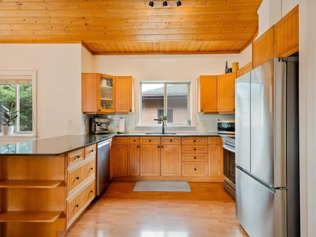 Experience the best of Pemberton Plateau in this stunning custom home on a desirable corner lot. The bright, spacious living area features vaulted wood ceilings and abundant natural light. Cozy up by the wood-burning fireplace in the winter and appreciate the luxury of air conditioning in the summer. Enjoy phenomenal Mount Currie views from the balcony and expansive sundeck, ideal for entertaining. The beautifully landscaped grounds include a firepit and chairs, perfect for summer sunsets. Inside, find two bedrooms and a versatile sunroom. This home offers excellent income potential with two one-bedroom revenue suites. There’s ample parking and storage with two driveways, a two-car garage, and a crawlspace. World-class mountain bike trails and Den Duyf Park are at your doorstep.