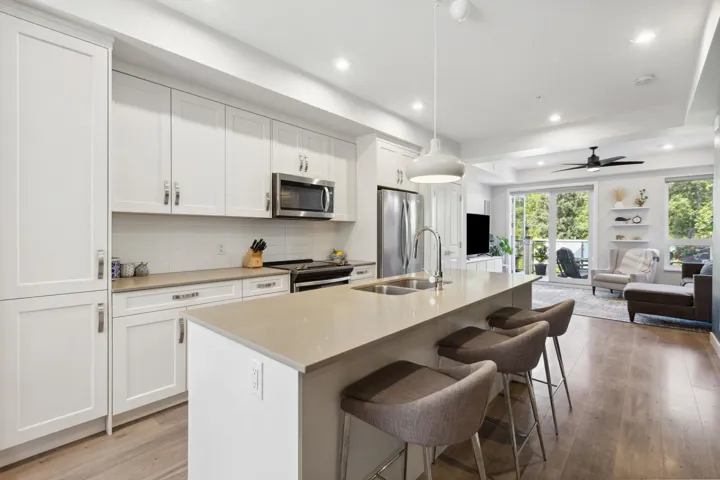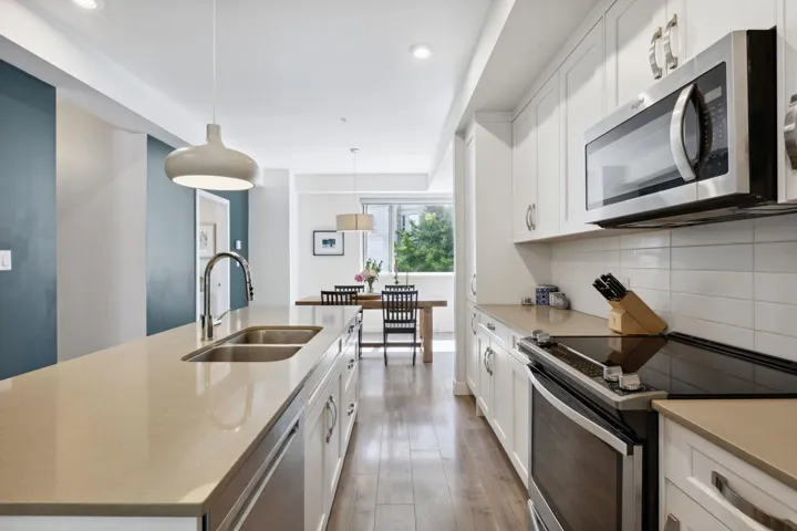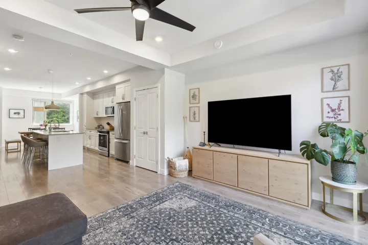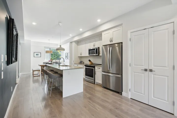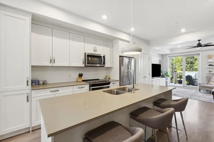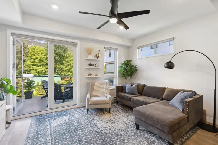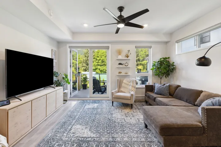 Beautiful 3-bedroom townhome at Soleil at Coastal Village! This spacious and bright end unit townhome boasts soaring 9’ ceilings and ample natural light throughout, and features open-concept main with gorgeous white shaker cabinetry, quartz countertops, and wide plank laminate flooring. Inviting living room with French doors lead you out to very spacious patio with mountain views overlooking the Estuary. Complete with two side-by-side parking and one locker. Soleil is a well-managed, pet-friendly complex just steps to downtown Squamish with hiking and walking trails at your front door. Call today!