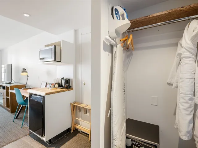 Adara Hotel is centrally located smack in the middle of Whistler Village and an easy walk along the pedestrian-only pathway to the Whistler Village Gondola. #205 is a 371 sf studio suite with Double Queen pillowtop beds, fluffy bathrobe, free WI-FI, modern bathroom and walk-in shower. A convenience station with microwave and bar fridge helps you get outside fast in the mornings and in the afternoons, enjoy the sunsets from your private balcony or the outdoor pool firepit, and hot tub. Adara is a pet friendly hotel and complimentary amenities include free golf, bike, ski and luggage storage during your stay. Adara is also a Traveler’s Choice Trip Advisor Award Winner in 2023. Call to find out more.