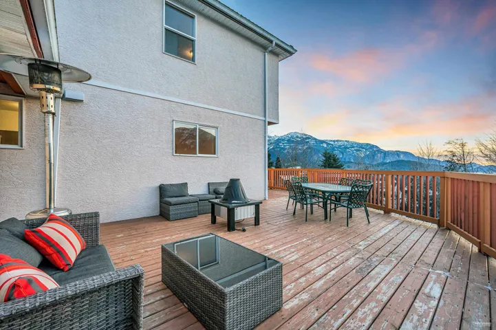 This meticulously kept 6-bed, 5-bath custom home in the desirable Highlands offers breathtaking mountain and ocean views. Positioned on a corner lot, it features a circular driveway at the front and a second driveway for the lower entrance, accommodating up to 10 vehicles. Inside, hardwood flooring, a spacious great room with large windows, and a south-facing deck accessible from the kitchen and living room enhance the interior. Upstairs, find 4 bedrooms and two full bathrooms; downstairs, a walk-out basement includes a workshop, flex room, laundry, and a separate 2- bedroom, self-contained in-law suite ideal for elderly parents or as a mortgage helper!