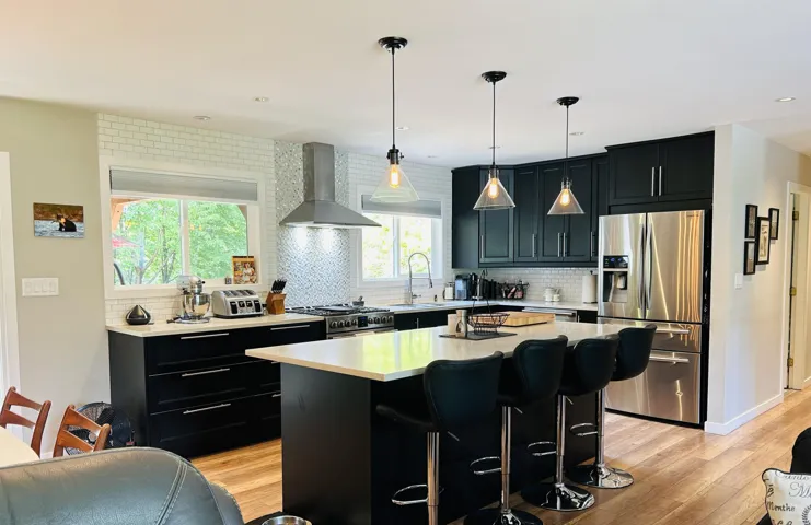 KINTYRE DRIVE, GARIBALDI HIGHLANDS. This 4 bedroom home of over 2500 sq ft., is centrally located on a fully fenced private 11,000 sq ft lot. Deceptively unassuming from street; its been improved with many thoughtful upgrades & updates over the years. New oversized 600sq ft Garage; Custom timber covered rear deck with skylights; redesigned open concept kitchen with elite appliances, gas range, tons of custom cabinetry & solid surfaces. Hot water on demand. Newer flooring throughout, resurfaced ceilings & pot lights added as well. Family room with gas fireplace below is open to Main level (great for kids)yet hidden from sight. Lock off area lower level has full bath, bedroom + 2 large flex spaces. Kitchenette too. Has been stayed in by friends in past & used as a 2 bdrm guest suite.