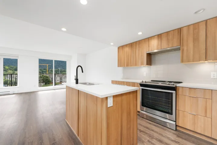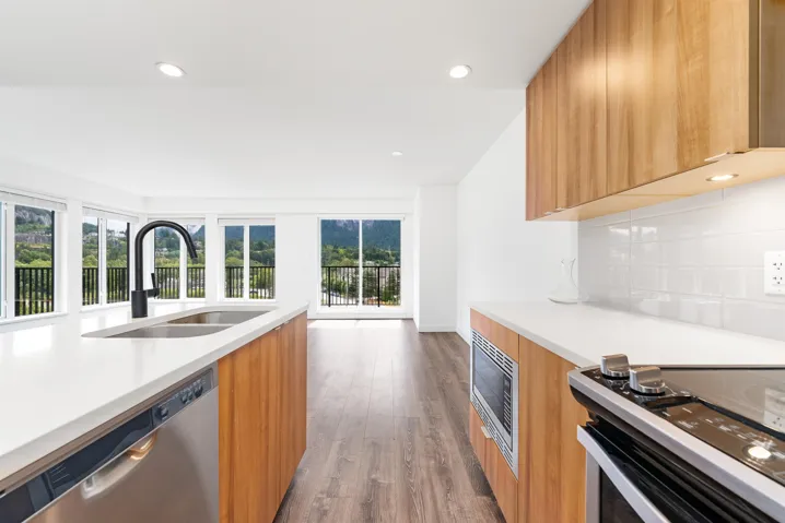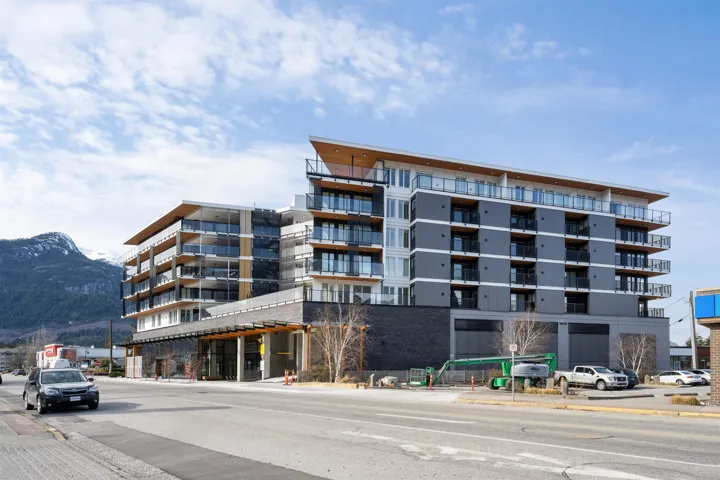 Location and VIEWS ! This corner unit on the 5th floor of the nearly new VANTAGE building has unobstructed 180 degree views and offers 3 bedrooms and 2 full bathrooms. The main living area is an open concept where the exceptional kitchen will be the place for hosting. The living area overlooks the surrounding mountains and downtown Squamish from large windows that cover two sides and let in lots of natural light. Enjoy the spectacular views to the North facing Mt. Garibaldi /Diamond Head and to the East the Stawamus Chief from a large wrap-around patio. Conveniently located downtown makes everything you need within walking distance.