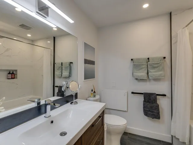 TURNKEY & COMPLETELY RENOVATED STUNNING VIKING RIDGE UNIT. Situated in the very best part of the complex with greenspace behind and steps away from Mamquam Elementary. This property was completely updated in 2019. Open modern kitchen with marble counter tops & stainless steel appliances. Main floor & stairs with wide plank oak flooring. Gas fireplace in the living room and new lighting throughout. Primary bedroom and secondary Bedroom with wide plank oak flooring with carpet within 3rd bedroom or office. Suspended vanities in Bathrooms with inset lighting, Kholer toilets and Riobel faucets, rain shower, hand wash. This is a fantastic example of a high quality Viking Ridge unit and is a must see.