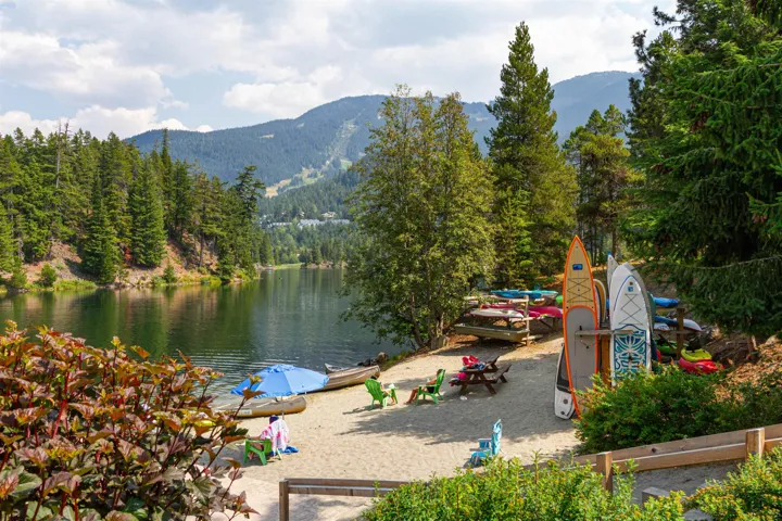 Experience the pinnacle of Whistler living in this exceptional 3-bedroom + loft, 4-bathroom lakefront townhome. Crafted for large families and entertainers, this rare gem boasts unparalleled lake and mountain views with endless activities at your doorstep. Step into #94 and be captivated by elegant touches like a heated stone entryway, an updated kitchen, and hardwood floors. The living room and deck offer serene vistas, perfect for relaxation. The primary bedroom features a spa-like ensuite with breathtaking views. The loft with vaulted ceilings and skylights adds an ideal sanctuary. The basement level offers a fourth bathroom, storage, and a recreation area. Twin Lakes’ amenities include a private beach, pool, tennis courts, and more. Being sold furnished & turn-key, this one won’t last.