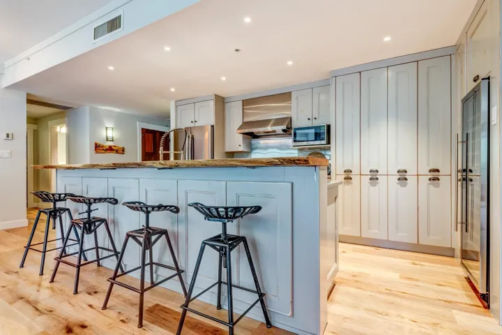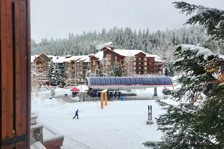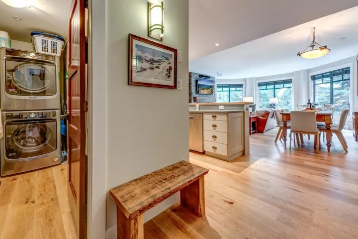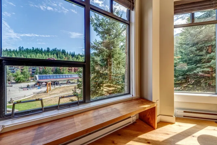 FIRST TRACKS LODGE – This luxurious 3-bedroom, 3-bath condo offers stunning front-row views of the Creekside Gondola and ski runs. The spacious living, dining, and kitchen areas are bathed in beautiful morning light, thanks to large bay windows. Units like this are rarely available, especially when renovated to the high standards of unit 314. You’ll be just steps from your ski locker to the lift, and after an exciting day on the slopes, you can ski right back to your door. Start your mornings in the exercise facility and steam room, then unwind in the year-round outdoor pool and two hot tubs. With two parking stalls, including an EV charger, you can park your car and enjoy the convenience of walking to all nearby Creekside amenities, including fine dining, grocery stores, pubs, and parks.