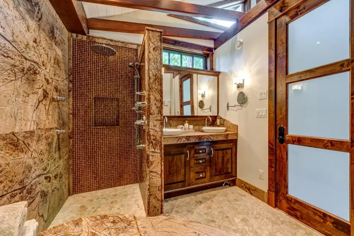 Exceptional luxury home in the exclusive enclave of Khyber Ridge. The quality of craftsmanship that has gone into this home is rarely seen in construction today. Custom pieces include over-height Alder interior doors, forged hardware & wood cabinetry. The kitchen is a Gourmet’s delight, featuring Sub-Zero & Wolf appliances, granite counters & 10-foot island with bar seating. The living room boasts a grand stone fireplace surround & french doors that open up to expansive mountain views. The entire top level is dedicated to the primary bedroom with heavenly ensuite & private terrace. More remarkable features include wine cellar, steam room, media room with wet bar, hot tub, radiant tile flooring throughout & security system. This is mountain living at its best.