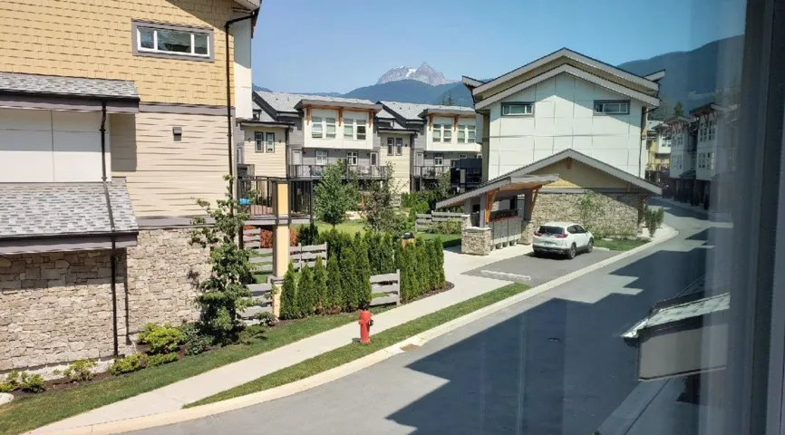 RARE south facing end unit w/ Mt. Garibaldi views facing protected green space at Seven Peaks by Polygon. Enjoy privacy + lots of natural light throughout the open plan main floor w/ oversized windows, 9 ft ceilings + north + south exposures. Large island w/ seating, kitchen window, gas stove, stainless appliances. South facing deck + lower level patio within private fenced yard – one of the largest ones in complex! Primary bedroom has vaulted ceiling, walk in closet + 5 pce ensuite bath. Double garage w/ extra storage/work bench space + door to back yard. Ideally situated across the street from Brennan Park Rec Centre + fields yet tucked away in a private oasis. Hop on the Corridor Trail which runs from Brackendale to the Chief. Easy hwy access from this family friendly complex. By appt.