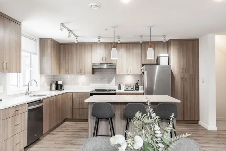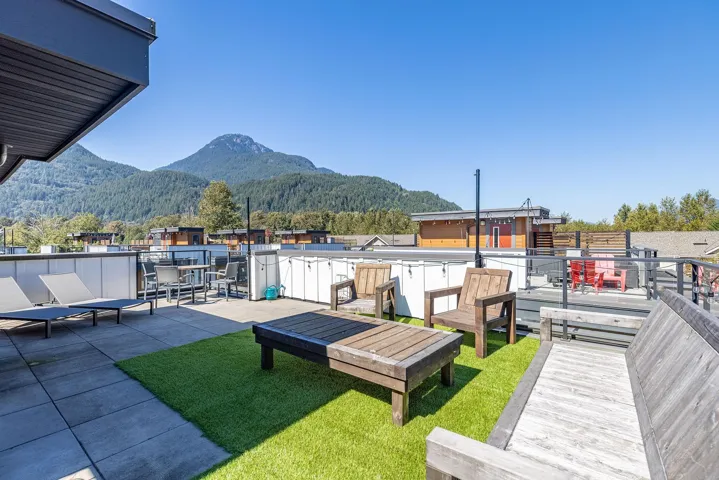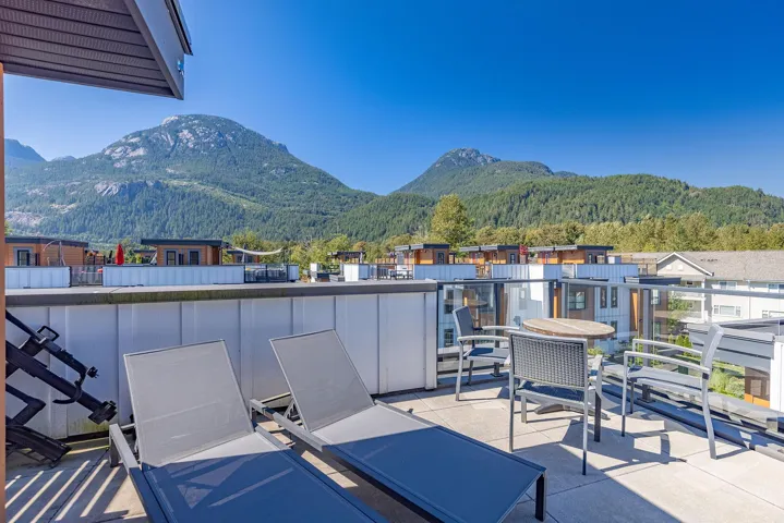 Gorgeous townhouse with stunning views from your private 500 sq/ft ROOFTOP DECK! Enjoy 360-degree scenery of the Squamish skyline at this 3 bed/2 bath home, less than 5 years old. The main level features 9-foot ceilings, a spacious living room, dining area, and a kitchen with quartz countertops and stainless steel appliances. The upper floor boasts a primary bedroom with walk-in closet and large ensuite, plus two bright bedrooms and a full bathroom. On the ground floor, find a spacious entry way, single garage with space for a vehicle, and a double carport offers extra covered parking. A short walk to riverside trails, local stores and restaurants!