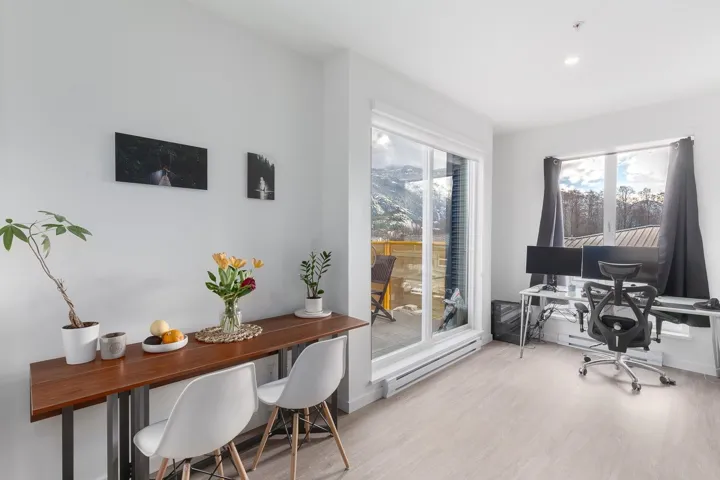 Experience unparalleled vistas in this exquisite two-story residence at The Lofts, Squamish’s premier address. Revel in unobstructed panoramas of the majestic Chief and Atwell Peak from nearly every room. Boasting two bedrooms and a versatile den, this home offers the flexibility to adapt to your lifestyle, with the potential for a third bedroom. Featuring two full bathrooms, shaker cabinets, caesarstone counters, and a stainless steel appliance package, every detail exudes sophistication. Additional highlights include ample in-unit storage and two supplementary lockers. Nestled in the heart of downtown, enjoy easy access to the Estuary, dog walking trails, boutique shopping, and the forthcoming waterfront development. Discover the pinnacle of urban living in this coveted corner unit.