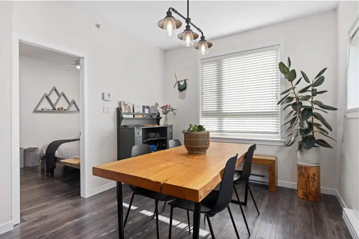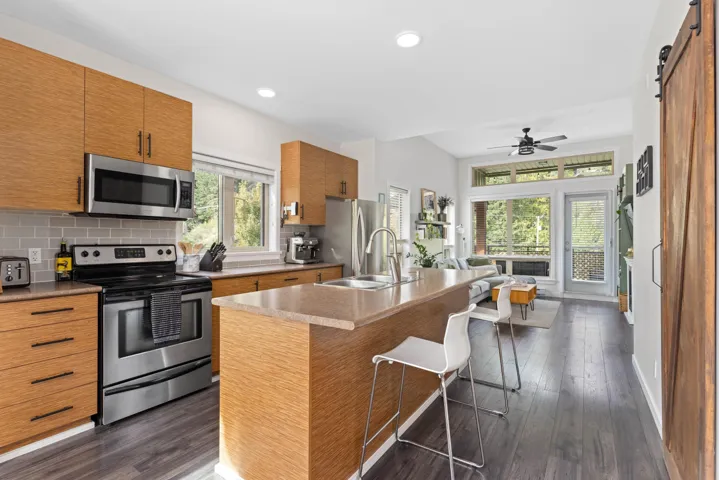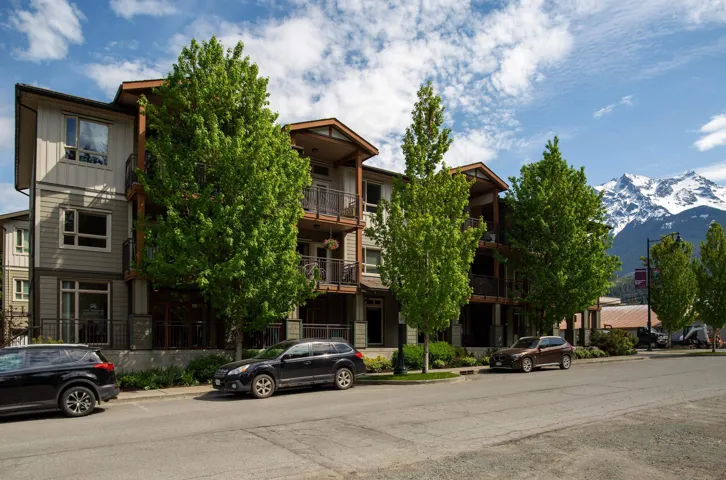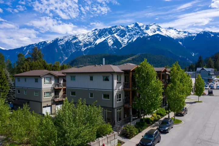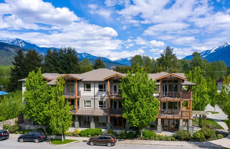 Discover this stunning top-floor corner unit condominium in Expedition Station, ideally situated in the heart of downtown Pemberton, just steps away from shops, restaurants, and essential services. Enjoy breathtaking views of Mt. Currie both inside and from the expansive balcony, with easy access to many Pemberton trails right out your front door. This unit boasts tall ceilings and additional windows, flooding the space with natural light from its east, south, and west exposures. Recent updates include stylish flooring and modern fixtures, complemented by ample storage solutions, including a built-in kitchen pantry. You’ll also appreciate the convenience of exterior parking, featuring a one-car garage and a storage loft. This light-filled residence is truly a rarity in Pemberton.