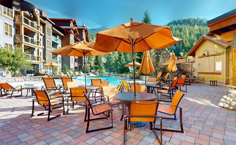 Whistler Creekside’s ‘Legends’ is one of the best SKI-IN/SKI-OUT & downhill biking locations in Whistler! This very spacious, accessible, 1 bedroom comes fully furnished & equipped with in-suite laundry, open concept living area with a gas fireplace and private, large sunny balcony with beautiful mountain views. Each quarter share ownership gives you 12 to 13 weeks a year (1 week a month) with the flexibility to personally use and/or rent out nightly through Vail’s rental management, ‘Lodging Ovations’. Legends outstanding amenities include; large heated outdoor pool, 2 hot tubs, gym facility, movie theatre, kids playroom, rooftop sundeck, owner lockers & U/G parking with EV charges available.The monthly fee includes the property tax, strata fees,Tourism Whistler fee & all utilities.