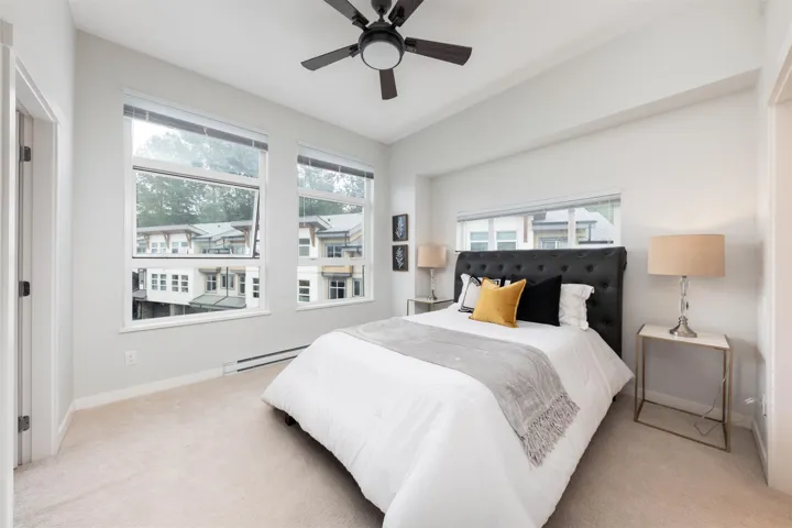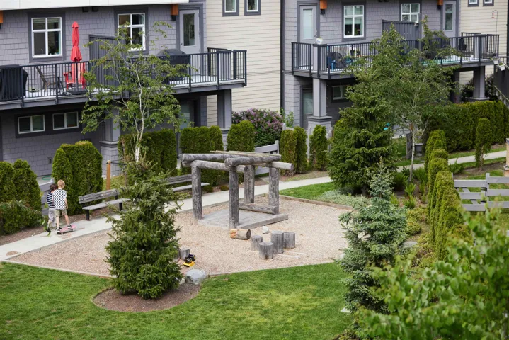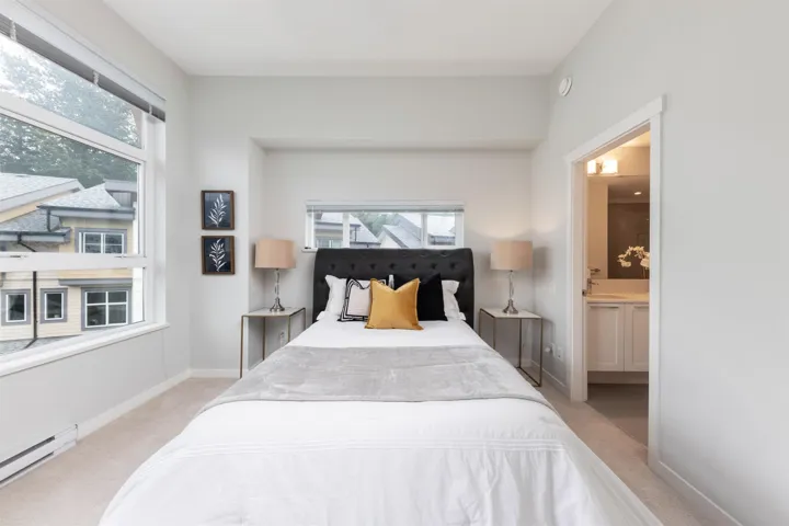 This 3 BDRM, 2.5 BATH home is at Seven Peaks by Polygon, a collection of West Coast contemporary t/homes in beautiful Squamish. This 1,674 sq . ft . home has a bright, open concept main living area with 9′ ceilings, warm laminate flooring, large windows, and a wide deck overlooking an enclosed backyard. The gourmet kitchen has custom-designed cabinetry, sleek stainless steel appliances, engineered stone counter tops, and a huge island – a perfect gathering place! Upstairs, MBDRM and 2nd BDRM have 10′ ceilings . The luxurious master en-suite features a spa shower with frame-less glass door, rain shower head, and built-in bench. Enjoy a life surrounded by nature.