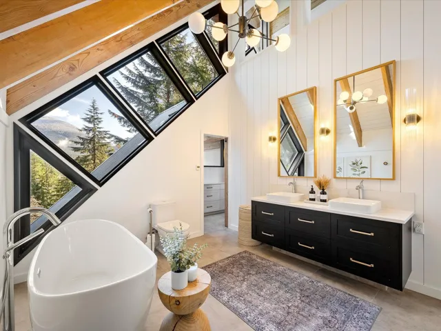 Introducing 122W house; the ultimate mountain retreat crafted for those with an eye for architectural excellence and design. This turn key home offers panoramic mountain views, with Green Lake resting just below. Inside, the home blends style and comfort seamlessly with the outdoors. Each spacious bedroom is designed to be a private haven, while the entertainer’s kitchen features high-end finishes and ample space for gatherings. The master bedroom and bath is its own private retreat on the top floor, fit with a walk in closet. The great room, centred around the fireplace, is perfect for cozy nights. Outdoors, you can enjoy the sound of a live creek beside the fire pit. Downstairs is a guest or family haven, with a games +flex room, and another bedroom. A 2 car garage tops off this home!