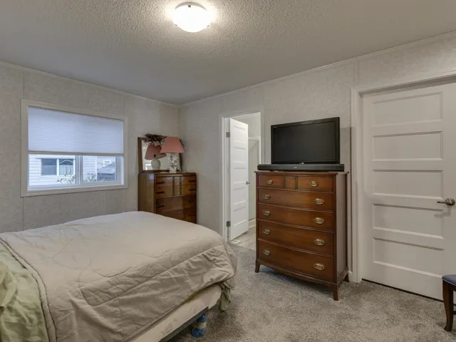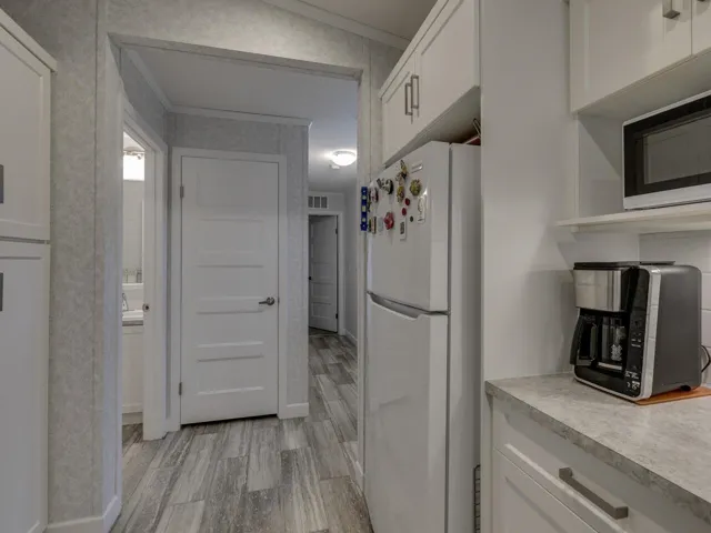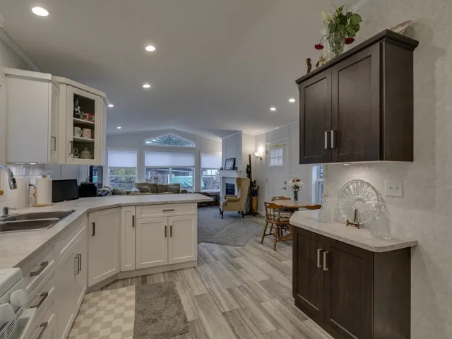 EASY TO SHOW – ONE OF A KIND! Uncompromising in design, elegance and features, the”Bennett”style home is created by striking roof profiles, eye-catching exteriors and innovative interior designs. With 1034 square feet of living space, there are plenty of windows to let in natural light, 2 large bedrooms; primary bedroom features a walk in closet w/full ensuite, open kitchen w/ gas range, and extra cabinetry, living room w/GAS FIREPLACE, separate laundry room with access to outside, Spiral MHP community provides a welcoming environment that’s conveniently nestled near shopping. Fully gravelled yard for low maintenance – or bring your gardening ideas. Pad fee currently $840.00 & includes park management, snow removal and municipal water, sewer, garbage & cable