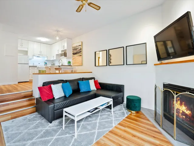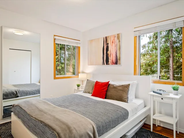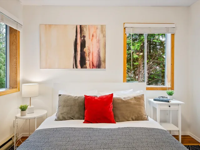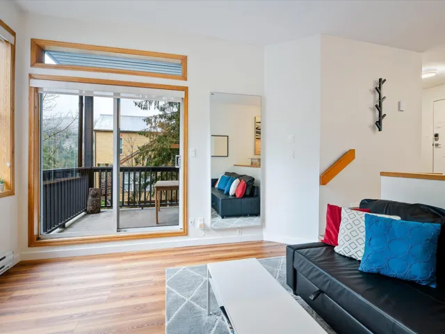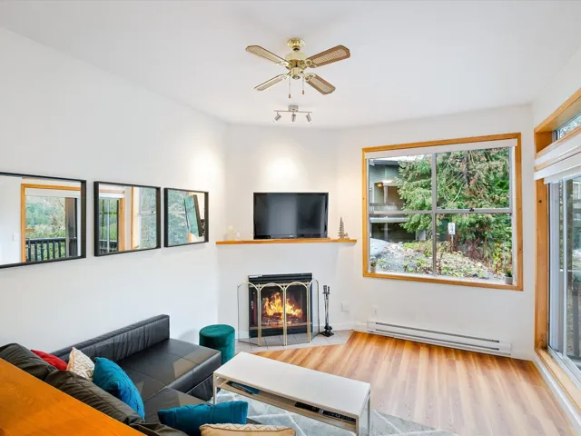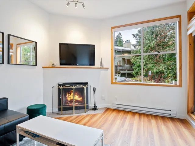This beautifully updated one bedroom townhouse is the perfect mountain retreat offering both comfort and convenience. Nestled in a private & quiet corner unit, features include a spacious sunken living room with vaulted ceilings and a cozy wood-burning fireplace, ideal for apres-ski relaxation. The bright, open concept floor plan is enhanced by large windows, providing an abundance of natural light & picturesque views of the surrounding forest & Mt. Sproatt. The kitchen & bathroom have been updated and there is in suite laundry adding an extra layer of convenience. Nightly rentals are permitted making this a great investment opportunity while owner usage is unlimited, giving you the flexibility to enjoy this property whenever you like. This is mountain living at its finest!