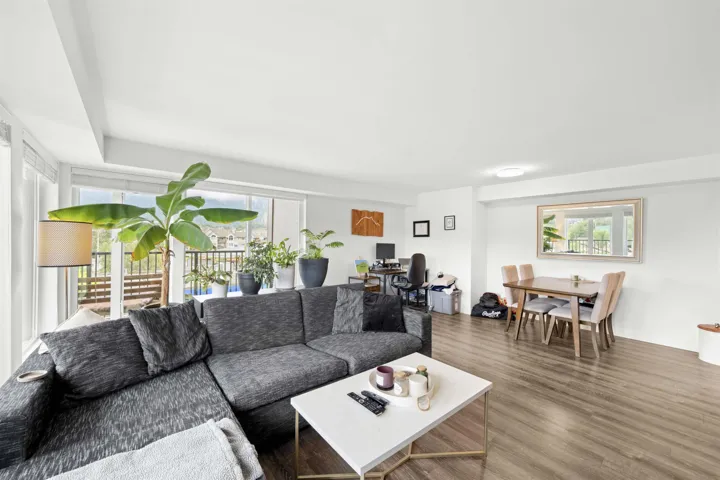 Discover the best of downtown Squamish living in this stunning 3-bedroom, 2-bathroom corner unit at Vantage. Soak in panoramic views of the iconic Tantalus Mountain range and The Chief from your living room or one of two wraparound balconies. Designed with an open-concept layout, this home is flooded with natural light through expansive windows and offers direct access to a beautifully landscaped courtyard, blending indoor and outdoor living seamlessly. Additional features include parking, storage, and the reassurance of a remaining new home warranty. Perfectly positioned just 30 minutes from Whistler and 50 minutes from Vancouver, this property offers the ultimate Sea-to-Sky lifestyle.