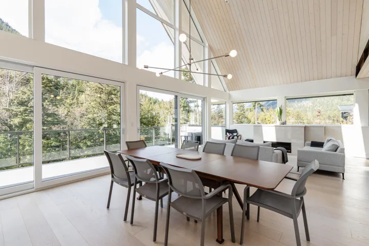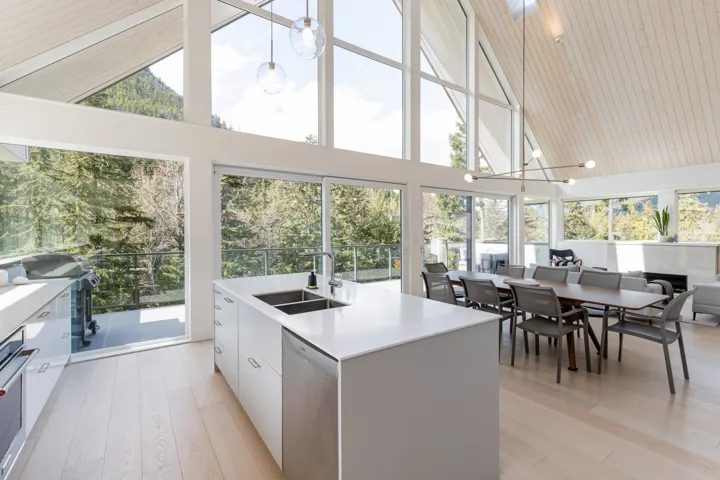Scandinavian-inspired estate on over an acre, offering striking modern design and a coveted riverfront setting. The 5-bed, 3.5-bath main home features soaring ceilings, expansive windows, and a refined open-concept layout filled with warm afternoon light and stunning mountain views. Designed for effortless entertaining and everyday comfort, the home showcases clean lines and elevated finishes throughout. A beautifully finished 2-bed coach house adds valuable flexibility for guests, extended family, or income. A rare chance to own a distinctive, design-forward property in the exceptional WedgeWoods neighbourhood.