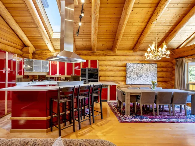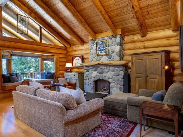 Exceptional craftsmanship and mountain living are on offer in this well-maintained log home situated on a quiet residential street moments from the Valley Trail, Whistler Village and Whistler Golf Course. At the heart of the home, the vaulted main living area connects you to the dining area and kitchen, while access to a sundrenched balcony with views of Blackcomb allows you to seamlessly include your outdoor space as part of the entertaining area. Backing onto a treed outlook, soak in silence from your hot tub, or relish in all the recreational conveniences that come with central living! The home is complete with ample bedrooms, a large family media room, garage, and convenient mudroom.