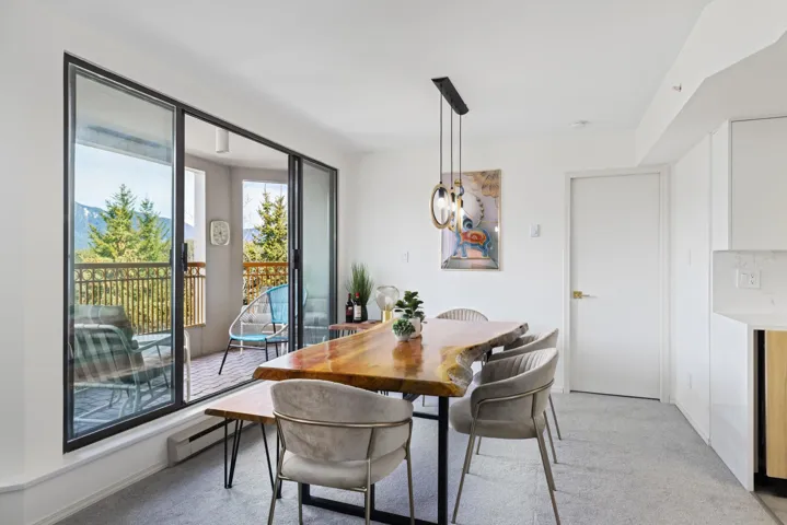 Indulge in breathtaking mountain vistas from every expansive vantage point of this open concept, beautifully renovated two bedrooms suite in the Benchlands! The open layout features two spacious private master bedrooms flanking an open living, dining, showcasing the brand new kitchen with all new appliances, complemented by ample storage, in-suite laundry, and dual balconies offering serene outdoor retreats. Its mountainside location is perfect for hosting friends and family year round. Nestled conveniently across from the ski in/ ski out trail to Blackcomb Mountain, it boasts proximity to the valley trail and an easy walk to the world famous Whistler Village. There is also a complimentary shuttle route to whisk you away to the vibrant village for dining and shopping escapades!