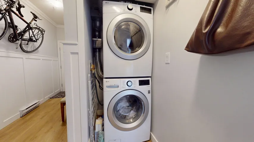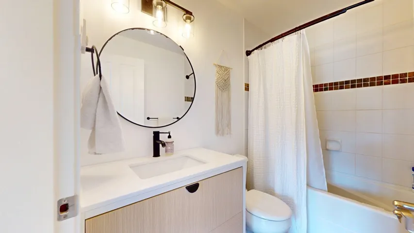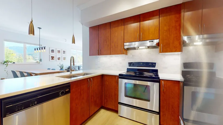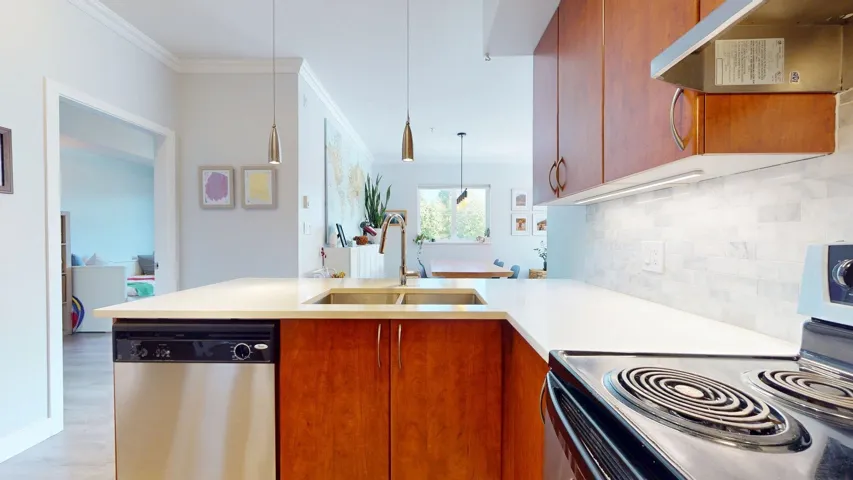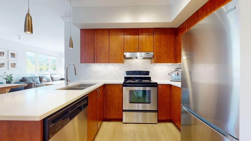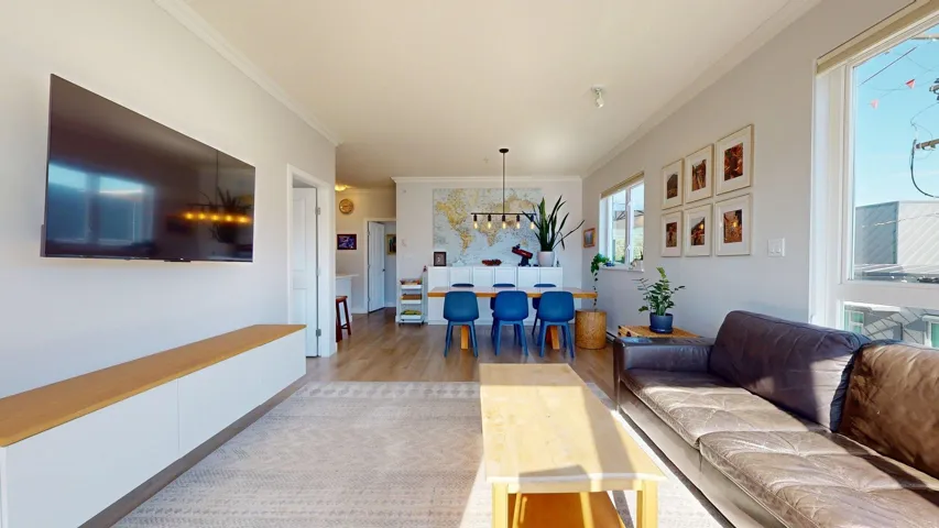 Welcome to this beautifully updated 3 bed, 2 bath corner unit in The Spectacle building! Bathed in natural light, this bright and sunny home offers expansive mountain views and a well-designed layout perfect for modern living. Step inside to discover fresh vinyl flooring and new baseboards throughout, stylish lighting upgrades, and fresh paint. The kitchen shines with new countertops and backsplash, while both bathrooms feature upgraded vanities. This spacious unit boasts two private balconies, perfect for morning coffee or evening relaxation. Additional highlights include two parking spots, a new washer/dryer, new fridge, a climbing wall and access to the gym. Located in a vibrant neighborhood close to shops, transit, and parks, this turnkey home is ready for you to move in and enjoy!